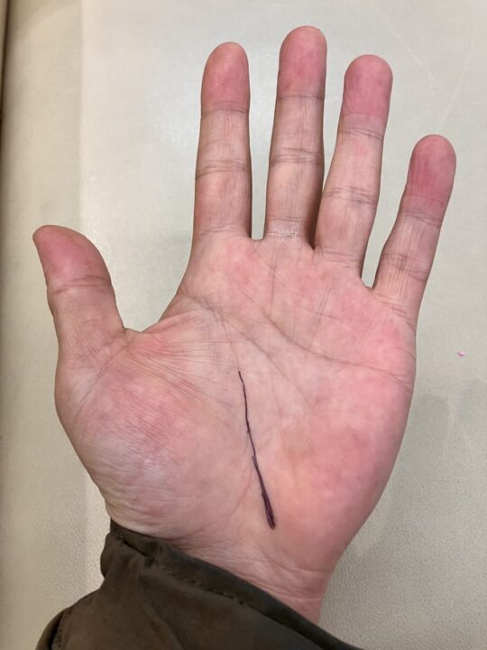 綺麗な一直線になってるのは、片手で50人に1人、両手で500人に1人くらいらしい